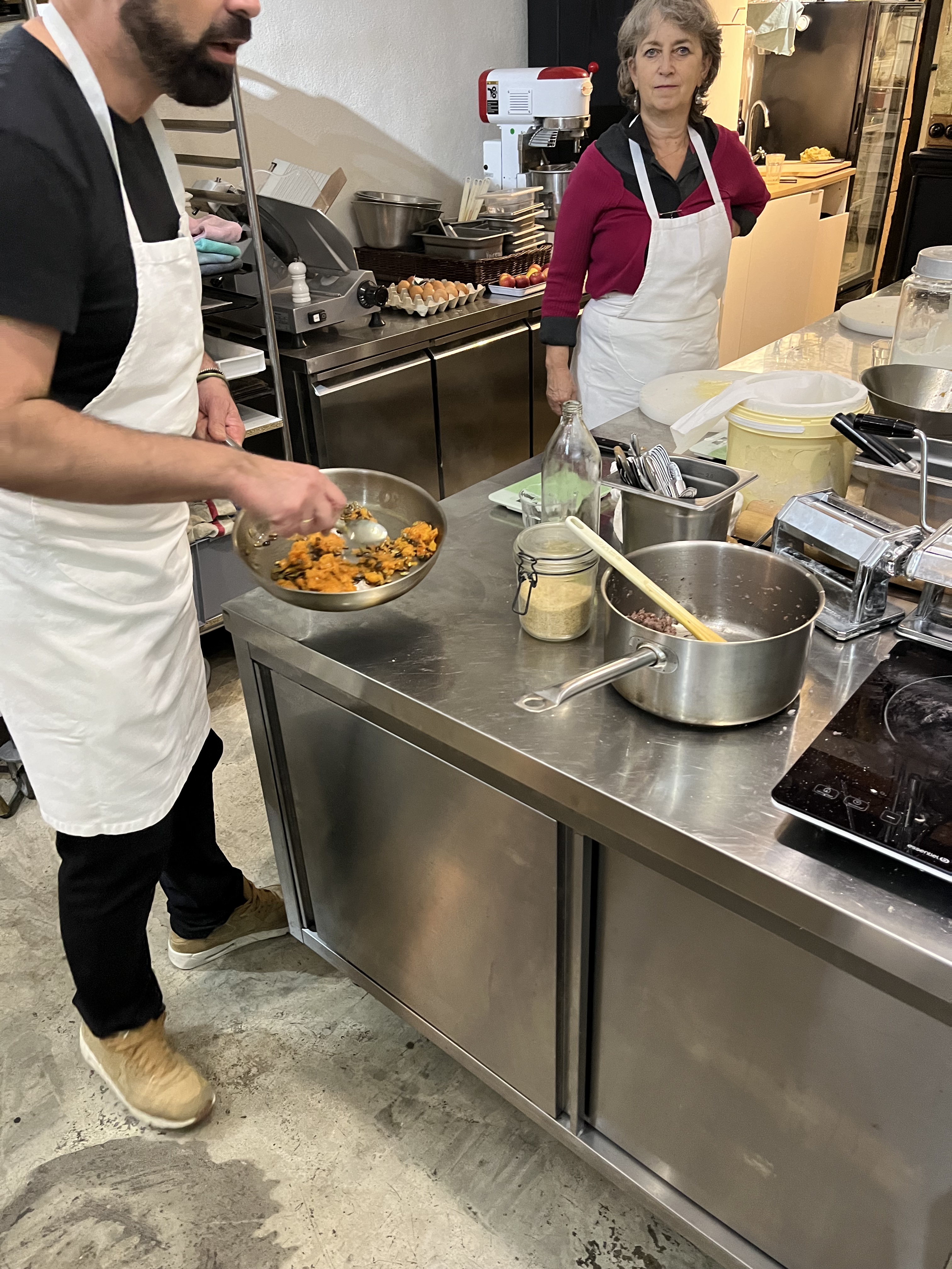 Après notre premier atelier avec le Chef Thierry, nous nous sommes inscrits à deux autres ! Le chef Thierry a un grand sens de l'humour et une approche décontractée de ses recettes. Il était heureux de répondre à toutes nos questions sur la recette, la nourriture de la région, l'histoire de la région et la culture locale. Tout ce que nous avons préparé était délicieux. Ses ateliers sont conçus pour que vous soyez occupé à préparer un autre plat pendant que l'on prépare ou cuisine. Le chef vous montre la suite et vous laisse le soin de continuer ou de répéter. Soyez prêt à participer ! Chaque cours était différent, mais ce furent toujours des expériences agréables. Nous reviendrons pour en savoir plus, Chef !