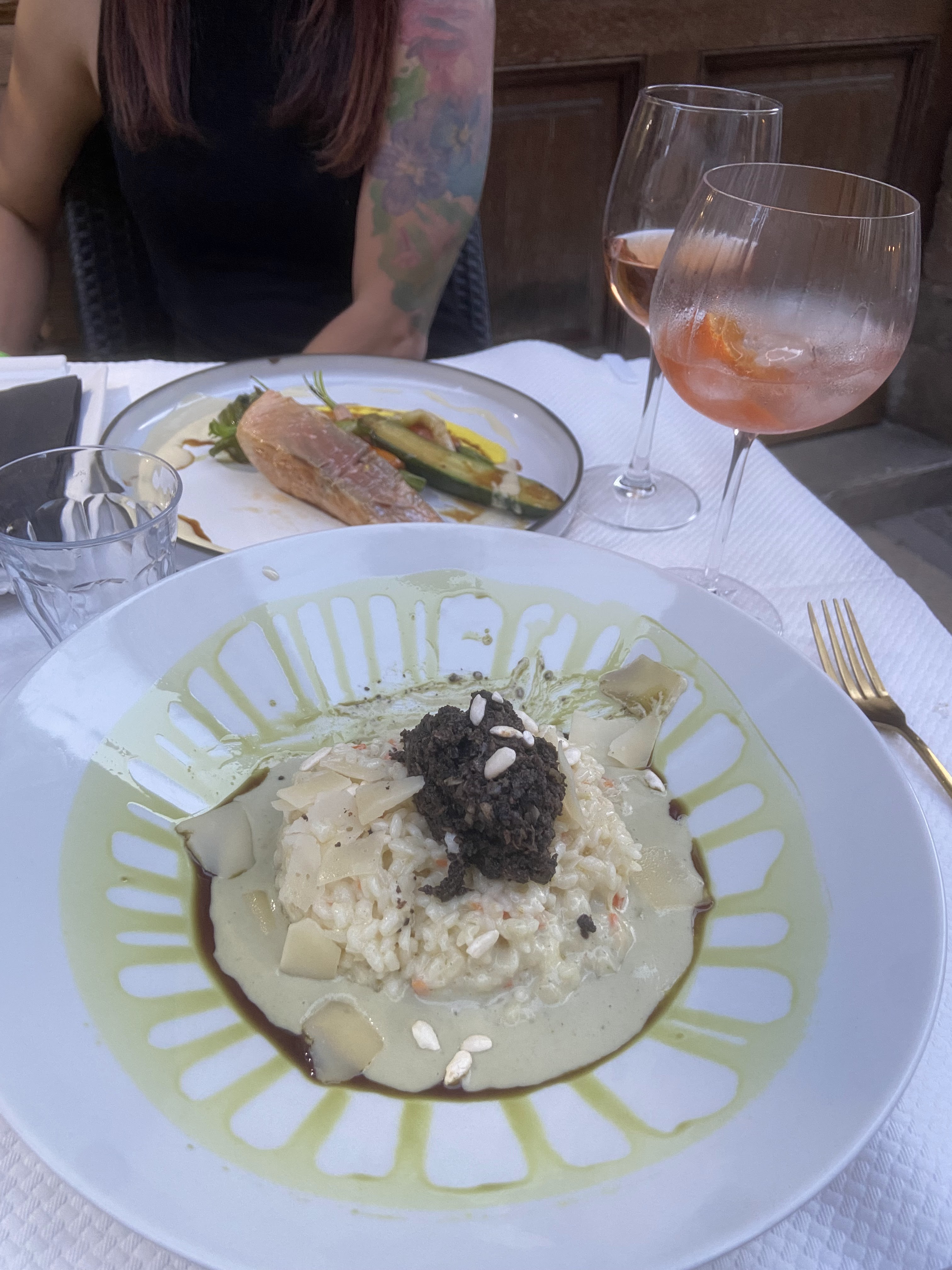 L'endroit est très agréable, meublé et soigné même avec des fourchettes en or, la nourriture était très bonne, et le cadre est superbe. Je recommande l'endroit aux touristes ! J'ai eu le risotto aux champignons (photo ci-jointe) et c'était vraiment délicieux. Le personnel est très gentil et ils vous font sentir comme chez vous. prix adapté au service, à la qualité et à l'environnement. Désolé pour le français peut-être pas correct, mais étant pho italien traduit avec le traducteur.