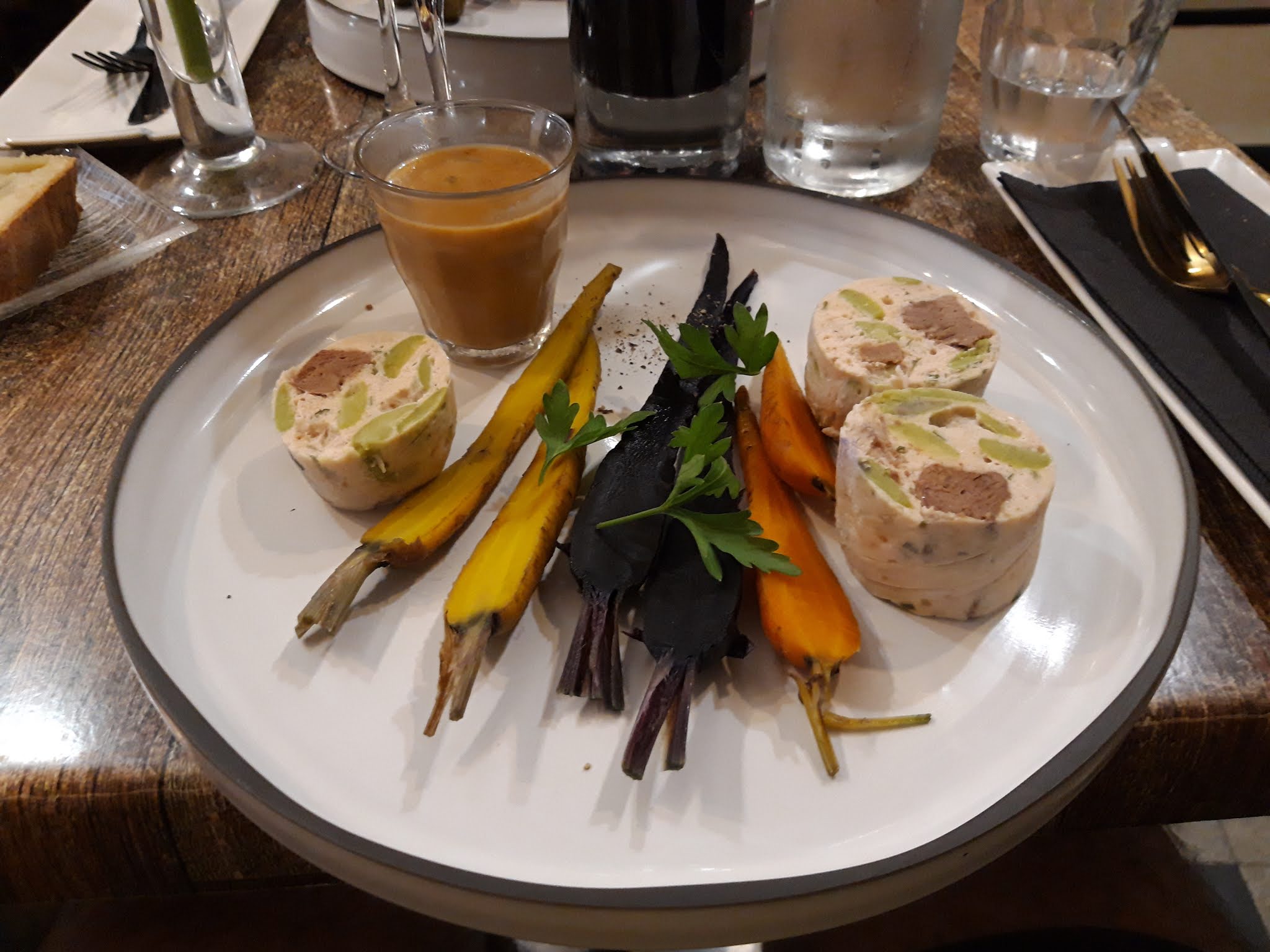 Petit resto au cadre très sympa. Serveur très agréable, tout mimi. Belle vaisselle. Bon repas, goutu, et bon vin. Un petit bémol sur les gougères qui n étaient pas à la hauteur du reste