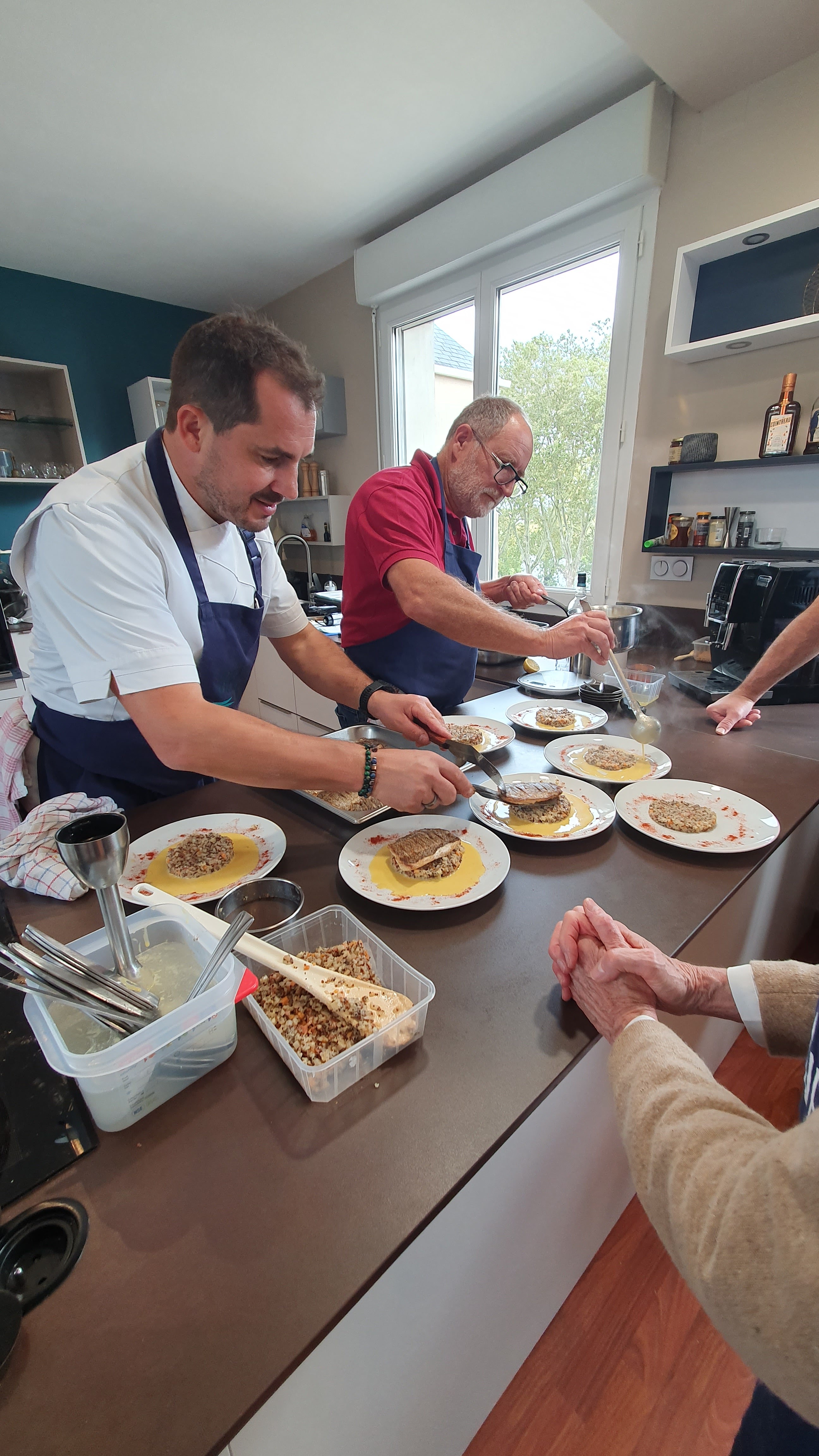 Un super moment de convivialité, de partage, d échanges, de rires avec un super groupe. Merci au Chef pour tous les conseils, les techniques, les petites astuces, qui nous ont permis de réaliser des plats beaux et délicieux. Une très belle matinée à renouveler.